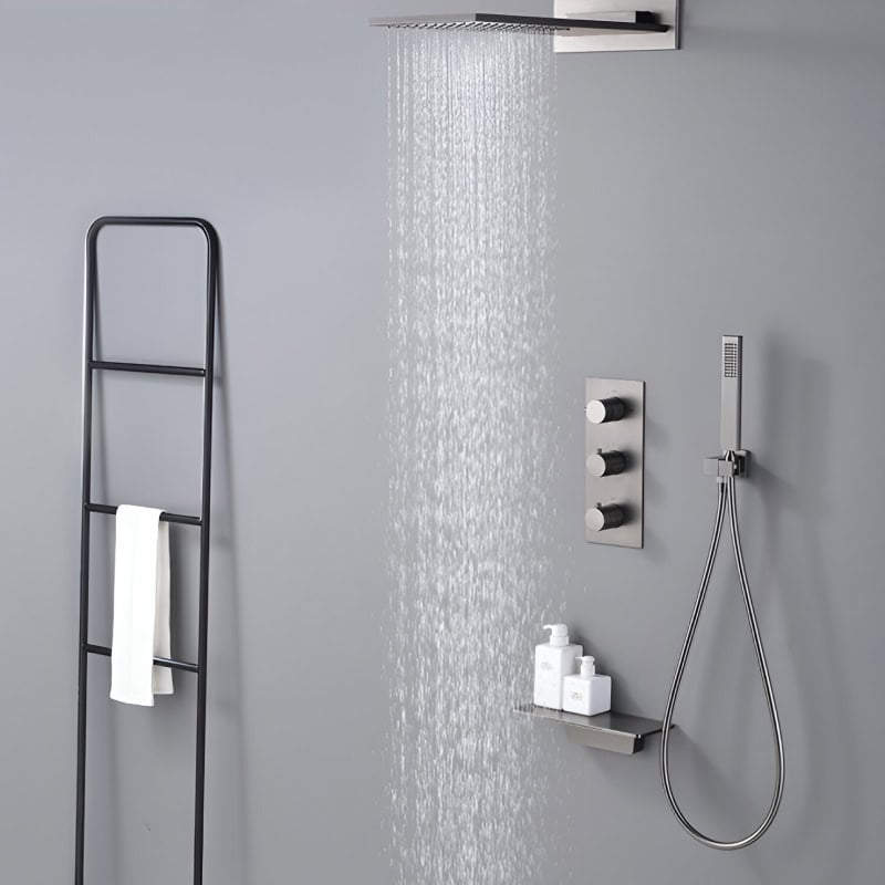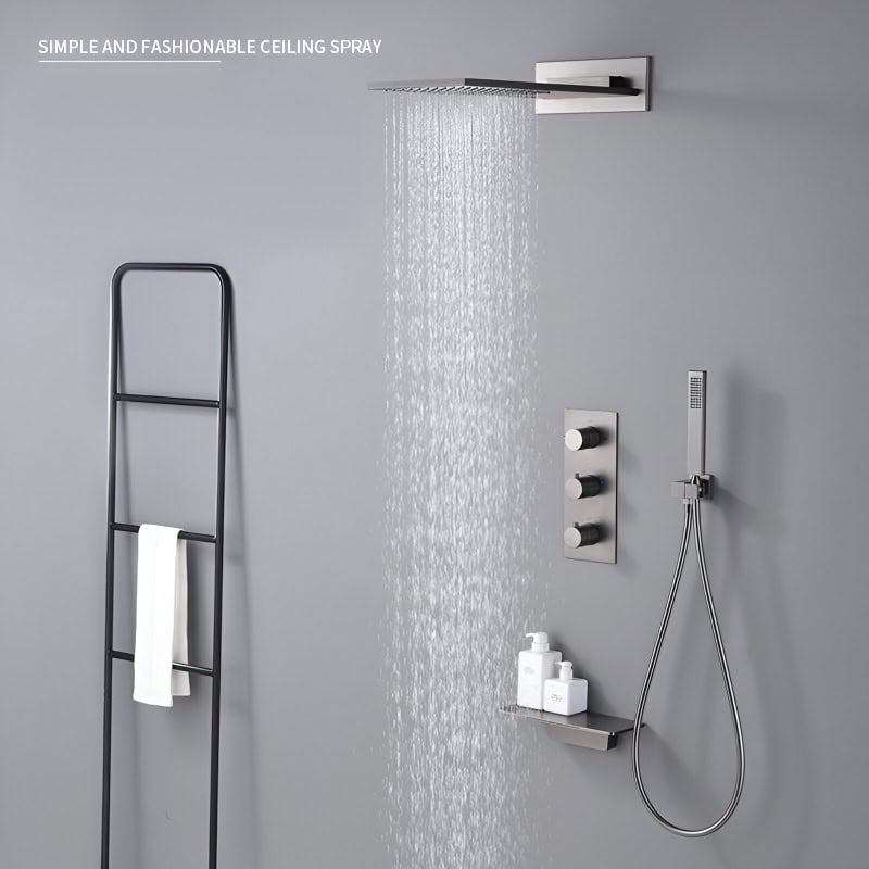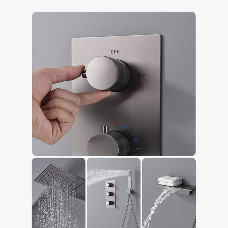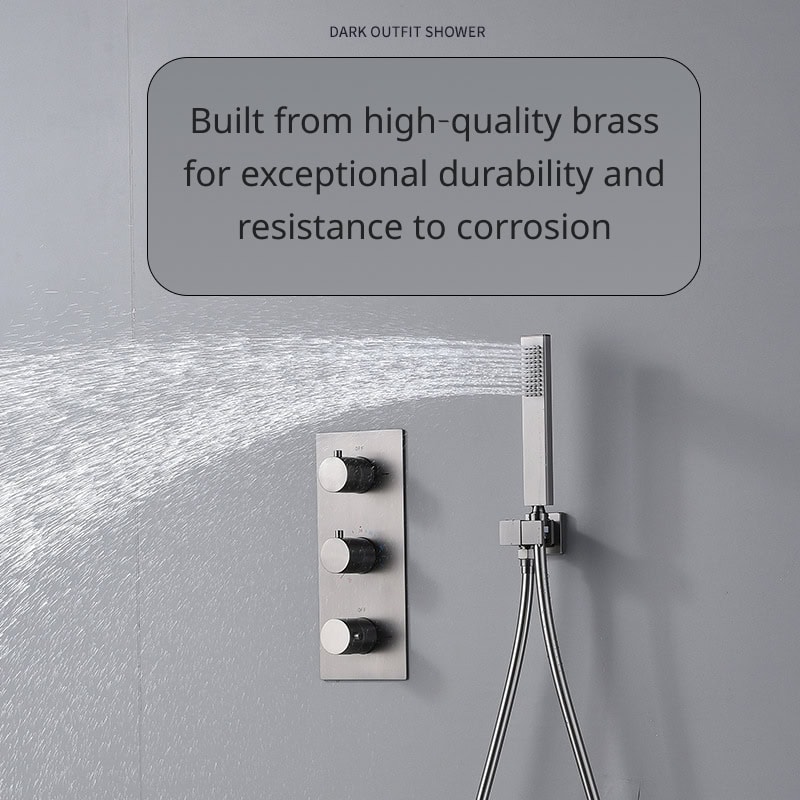 This shower system combines luxury and practicality in a single, elegant package. Its advanced temperature regulation prevents sudden water temperature fluctuations, making it safe and enjoyable for all ages. The electroplated gun gray finish adds a touch of sophistication, while its robust brass construction ensures it stands the test of time. With four distinct water flow options, you can easily switch between modes to suit your mood and preferences.