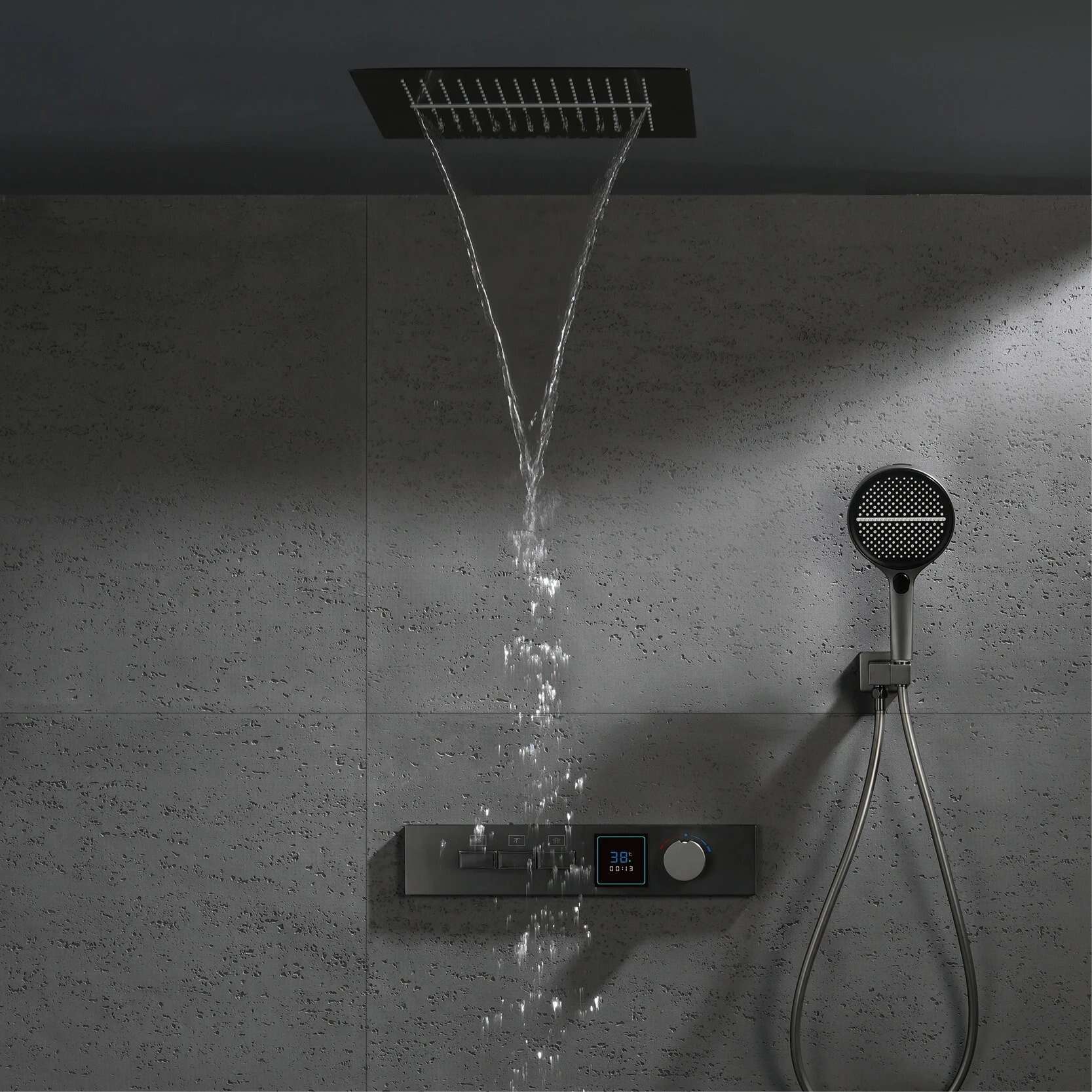Transform your daily routine into a spa-like experience with this exquisite luxury gun gray brass shower system. Designed to combine sleek aesthetics with exceptional functionality, this wall-mounted shower system features an advanced LED digital display and a constant temperature control to provide the perfect blend of style, comfort, and practicality.