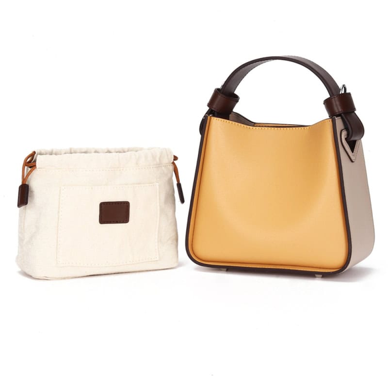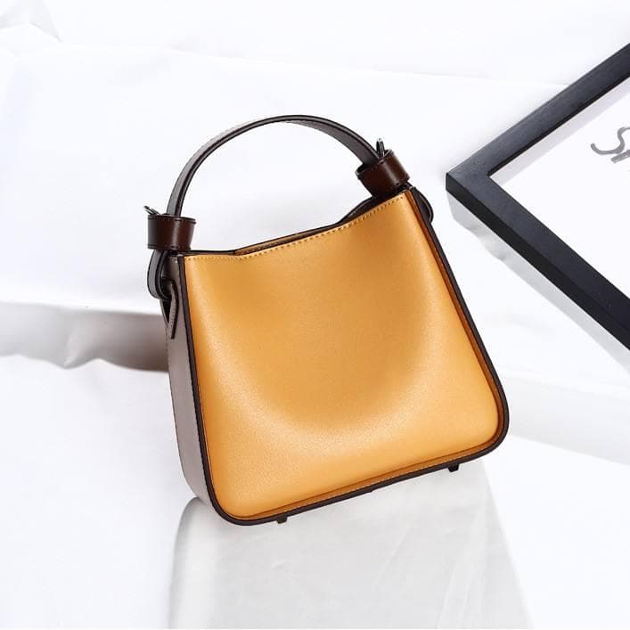 Stylish tan leather handbag with dark brown accents, perfect for fashion-forward accessories. High-quality, trendy and versatile for daily or special occasion use.