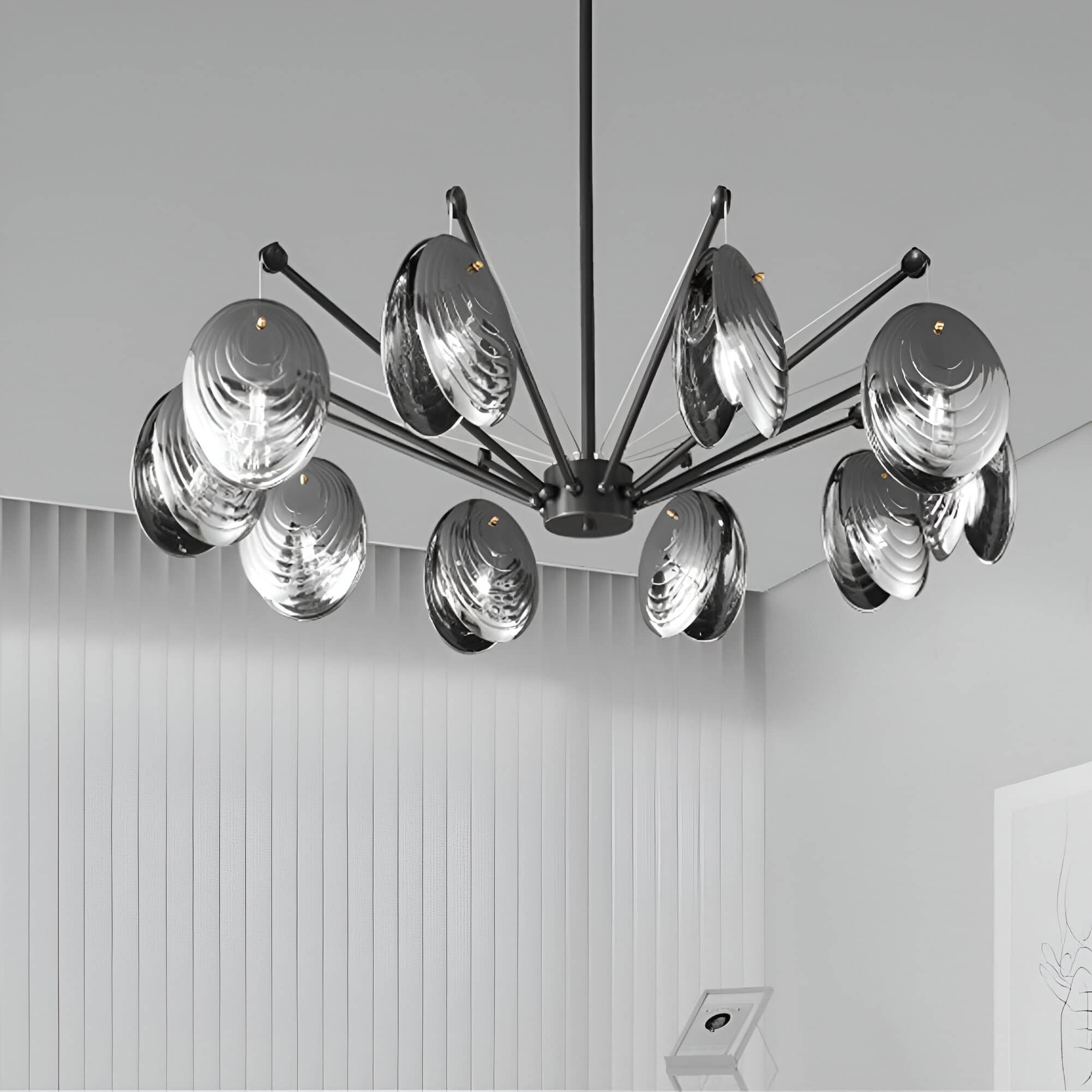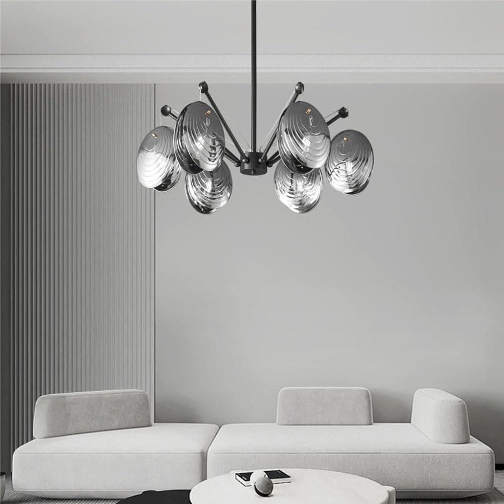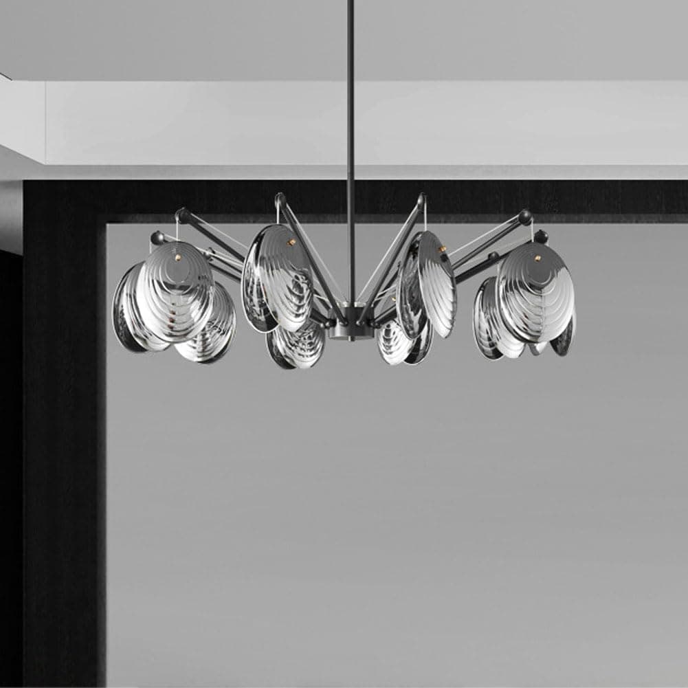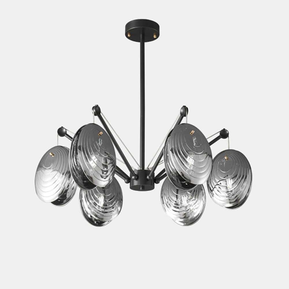 Elegant modern chandelier with multiple metallic glass shades, ideal for contemporary interior lighting, featuring stylish design and premium quality for luxurious homes or commercial spaces.
