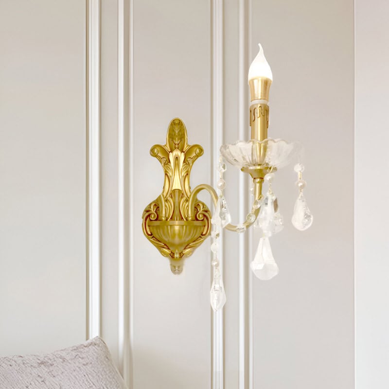 Luxury Retro French Romantic Copper Crystal Wall Lamp