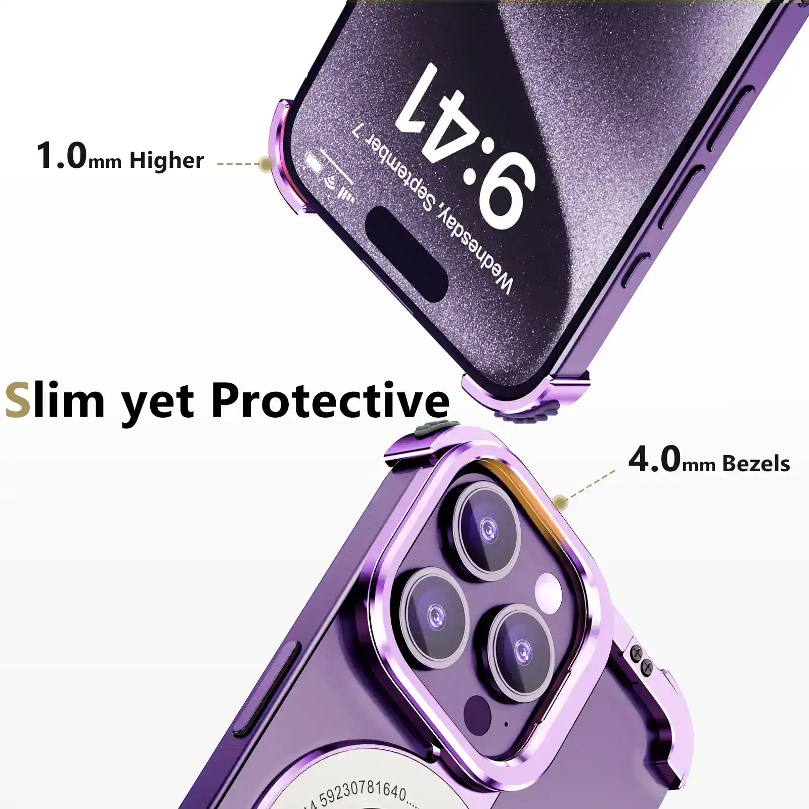 The combination of practicality and style sets this case apart. Its magnetic compatibility simplifies your charging routine, while the slim design ensures your phone remains pocket-friendly. The integrated kickstand adds versatility, and the durable metal frame offers long-lasting protection, making it an all-in-one solution for your device.