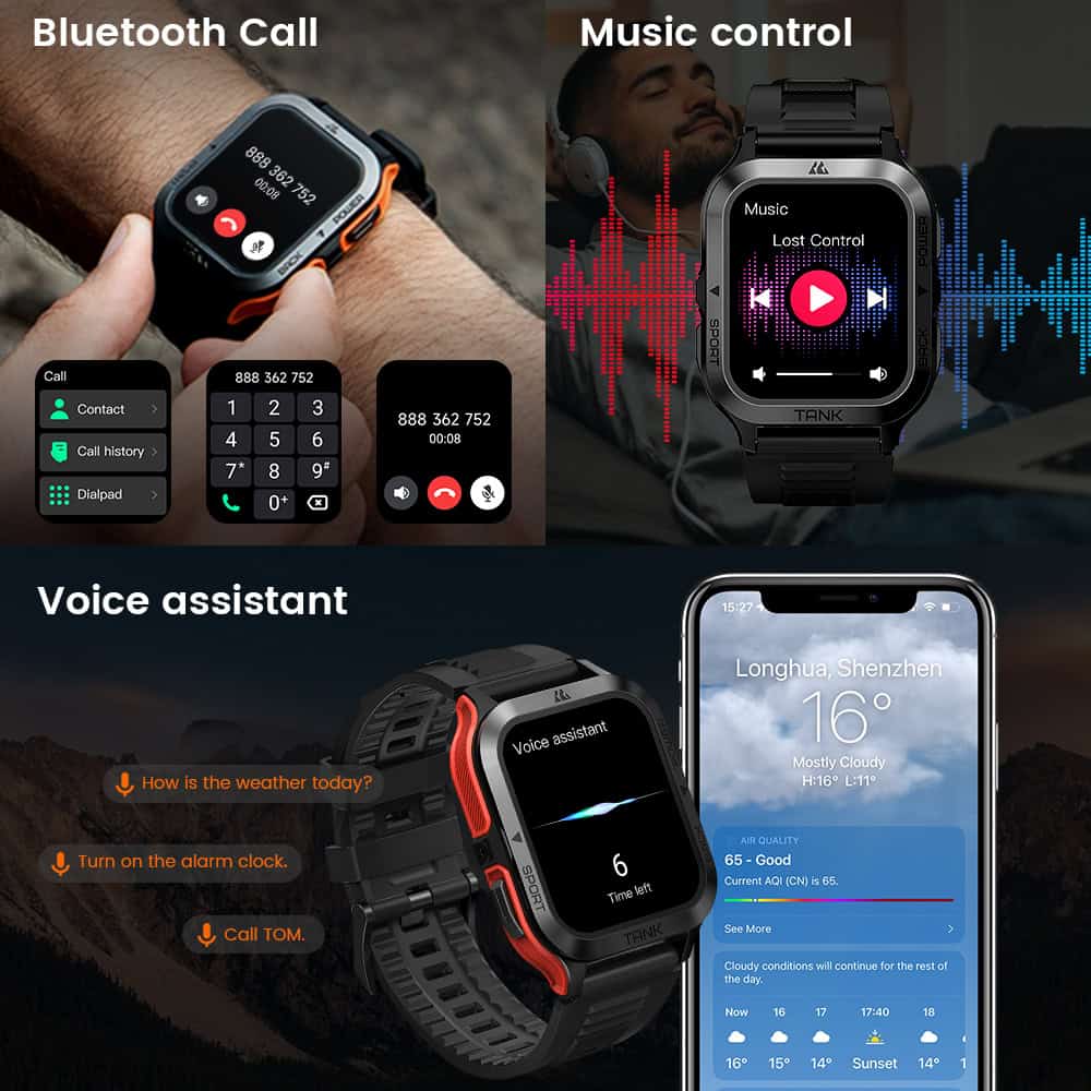 From fitness tracking to daily routines, this military-grade smartwatch is tailored for both athletes and tech enthusiasts who value style and functionality. Its lightweight, ultra-durable build and a powerful 380mAh battery ensure it’s always prepared to support your goals and adventures. This watch is ideal for anyone looking to elevate their performance in sports, enhance health awareness, or simply enjoy the convenience of an all-in-one device on their wrist.