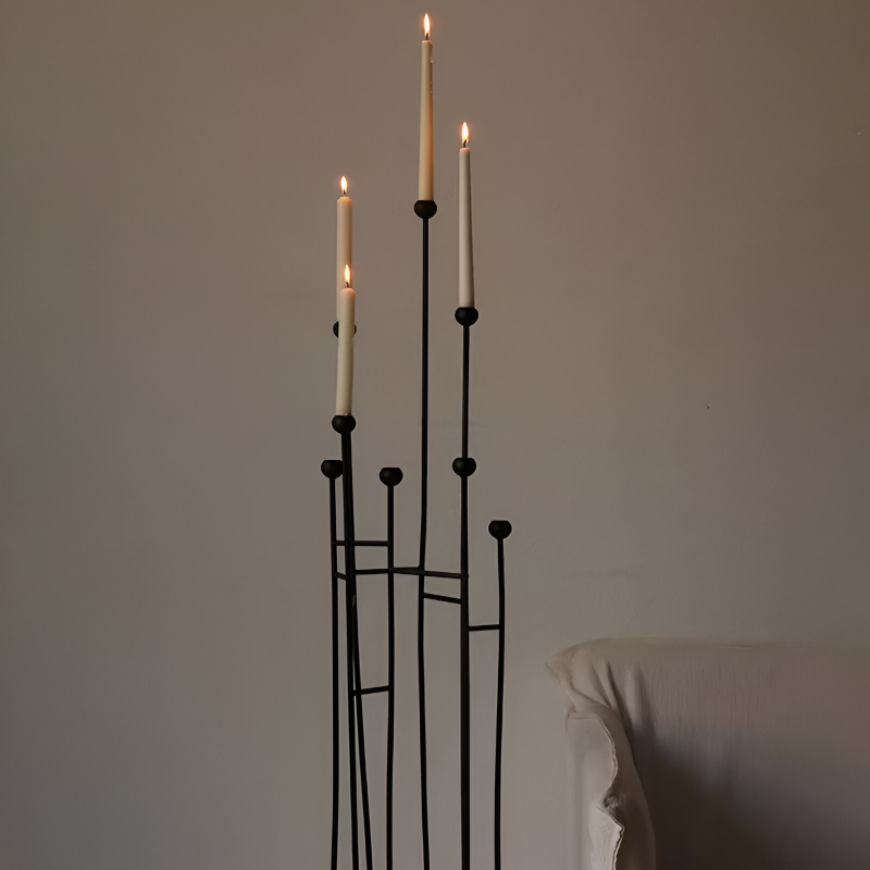 Add a touch of elegance and warmth to your space with these minimalist floor-standing candle holders. Crafted from high-quality iron, these candle stands are designed to bring a modern yet retro charm to your home decor. Perfect for living rooms, dining areas, or holiday setups, their versatile style makes them an excellent choice for enhancing any occasion, from everyday use to Christmas celebrations.