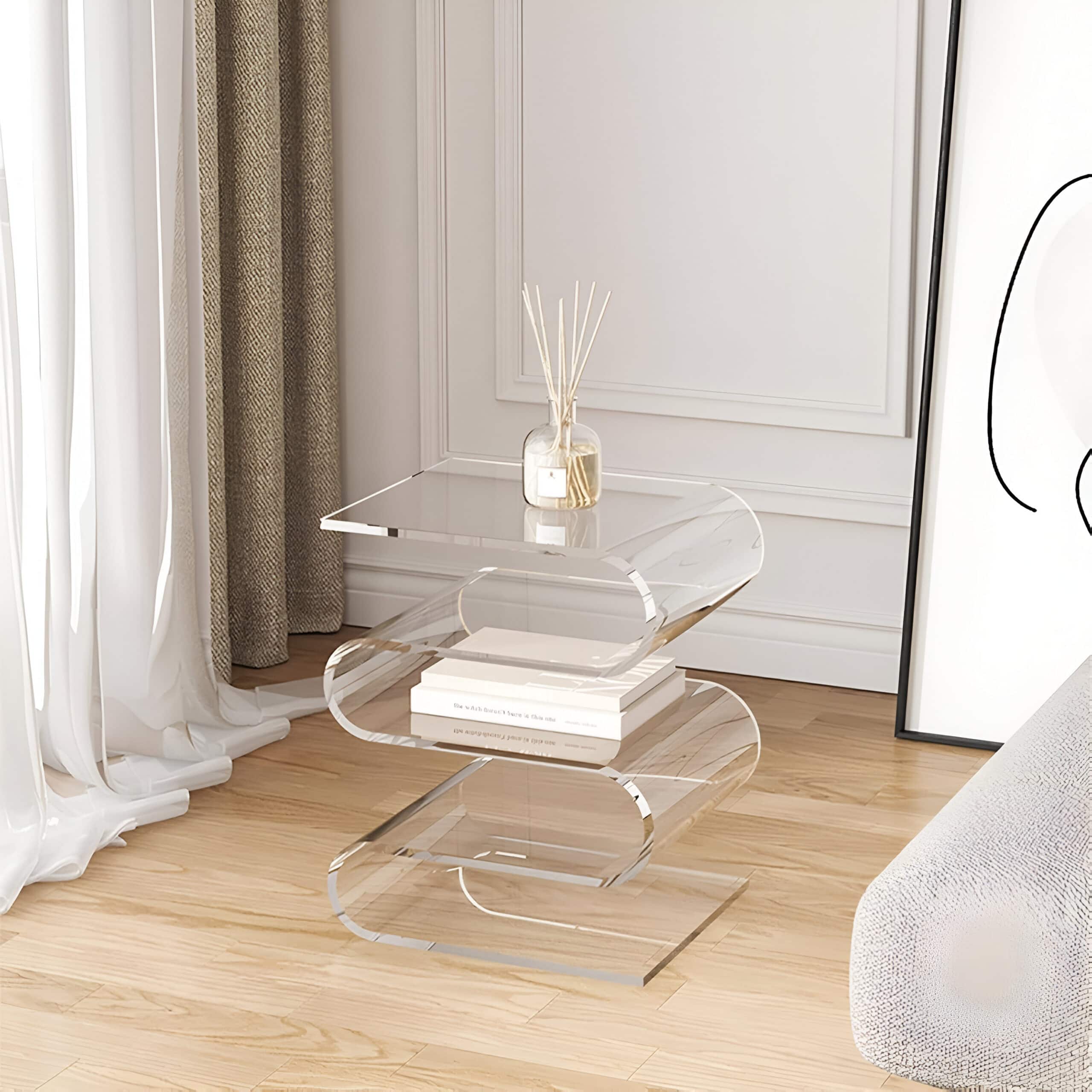 Minimalist Transparent Corner Side Table with Storage
