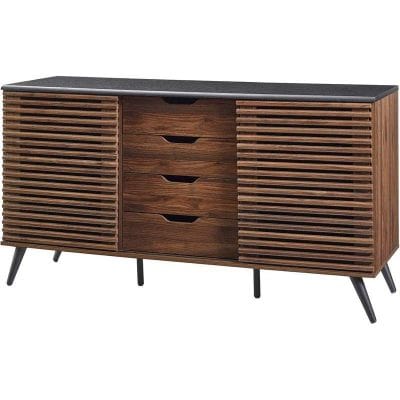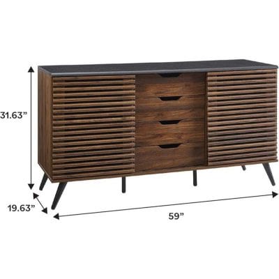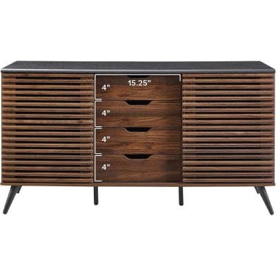Enhance your home with this Modern 4-Drawer Sliding Door Buffet Cabinet, designed to offer both style and practicality. Its sleek dark walnut finish and urban modern design make it the perfect addition to any living space, from your dining room to the entryway. With ample storage and customizable features, this cabinet provides an ideal solution to organize your home while complementing your contemporary decor.