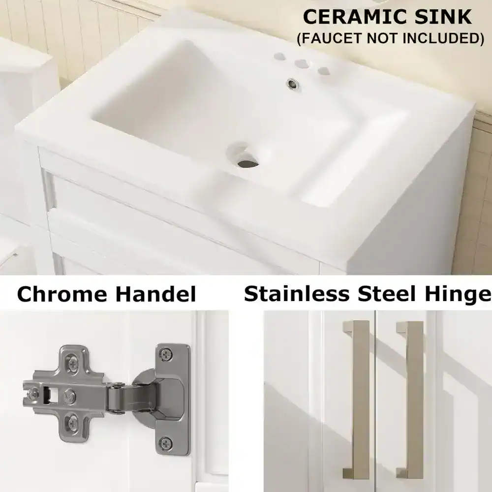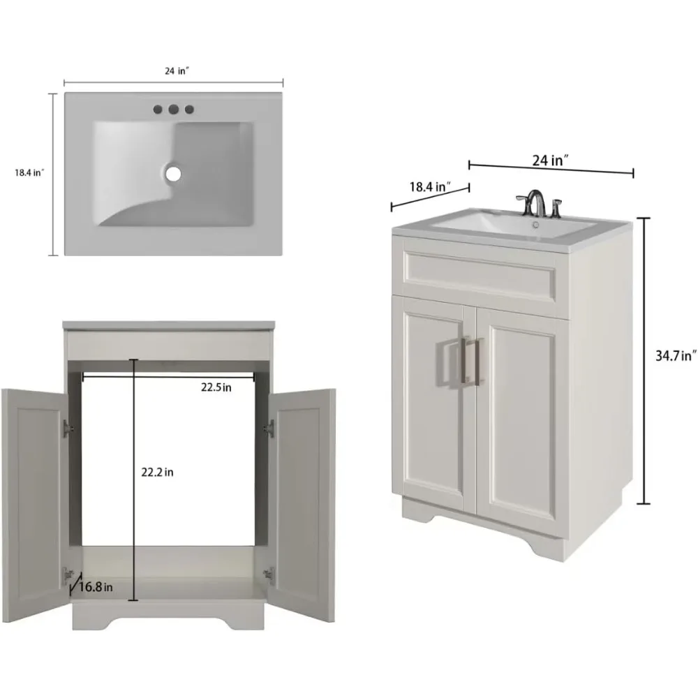 - Compact Design: With dimensions of 18.4″D x 24″W x 34.7″H, this vanity is ideal for bathrooms where space is at a premium.