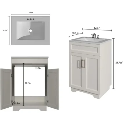 Transform your bathroom into a modern and elegant space with this 24-inch Bathroom Vanity featuring a sleek ceramic sink and ample storage. Designed to add both style and practicality, this grey vanity fits seamlessly into small or mid-sized bathrooms, making it perfect for those looking to enhance their bathroom’s aesthetics and organization.