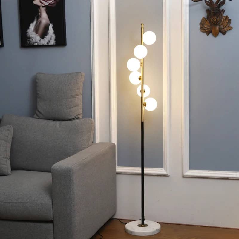 Transform your living space with the Modern Two-Color Glass Ball LED Floor Lamp. This stylish standing lamp combines minimalist Nordic design with high-end materials to create a sophisticated and functional lighting solution. Its unique two-color glass ball design and sturdy marble base make it an artistic statement piece that complements any room. Whether you’re looking to illuminate your living room, bedroom, or study, this lamp is the perfect blend of modern aesthetics and practical functionality.