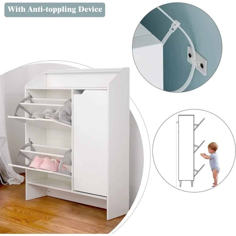 This shoe cabinet is designed to accommodate women’s size 11 shoes, men’s size 10 shoes, and children’s shoes effortlessly. The added anti-toppling device ensures stability, preventing any accidental falls that could harm your loved ones. With a thoughtful approach to design, we prioritize both style and safety in one functional piece.