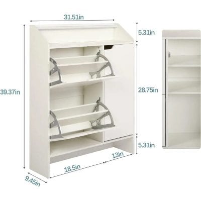 Be the first to review “Modern White Shoe Storage Cabinet with Top Place Space and 2 Flip Drawers”