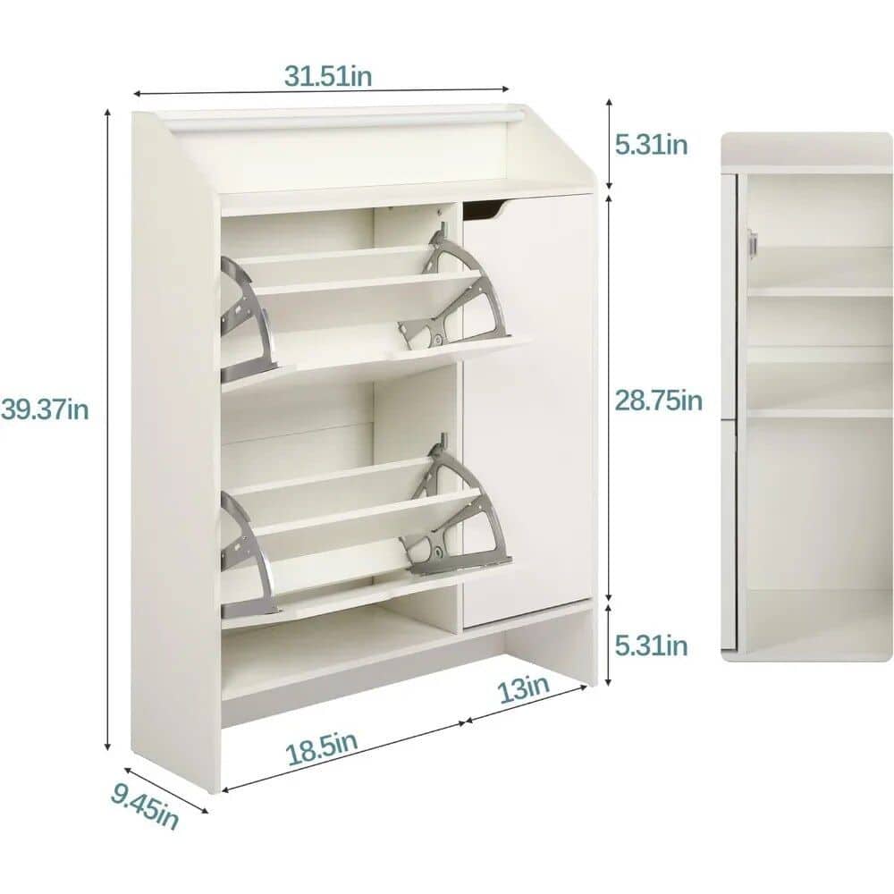 Modern White Shoe Storage Cabinet with Top Place Space and 2 Flip Drawers