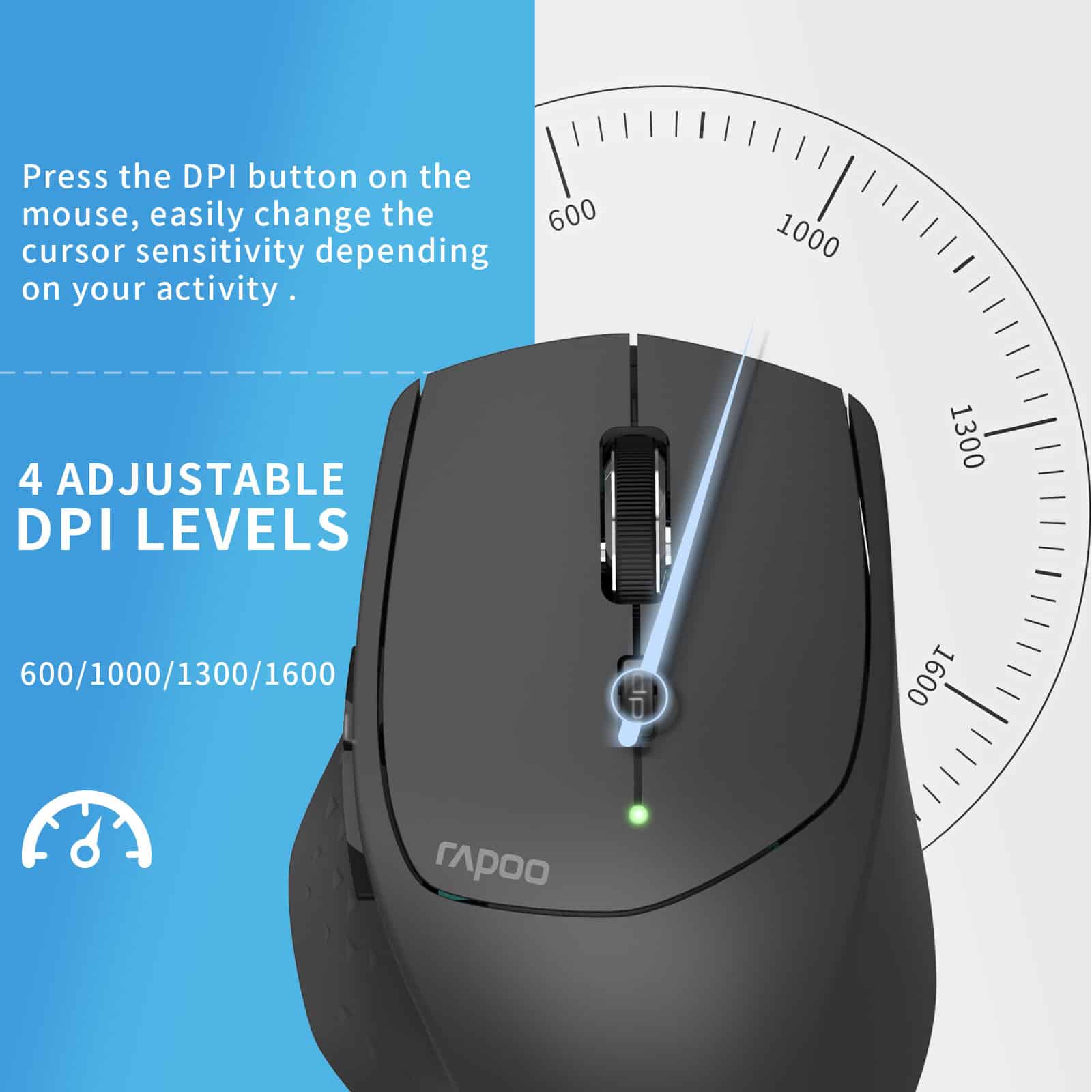 - Adjustable DPI settings (600, 1000, 1300, 1600) for tailored precision.