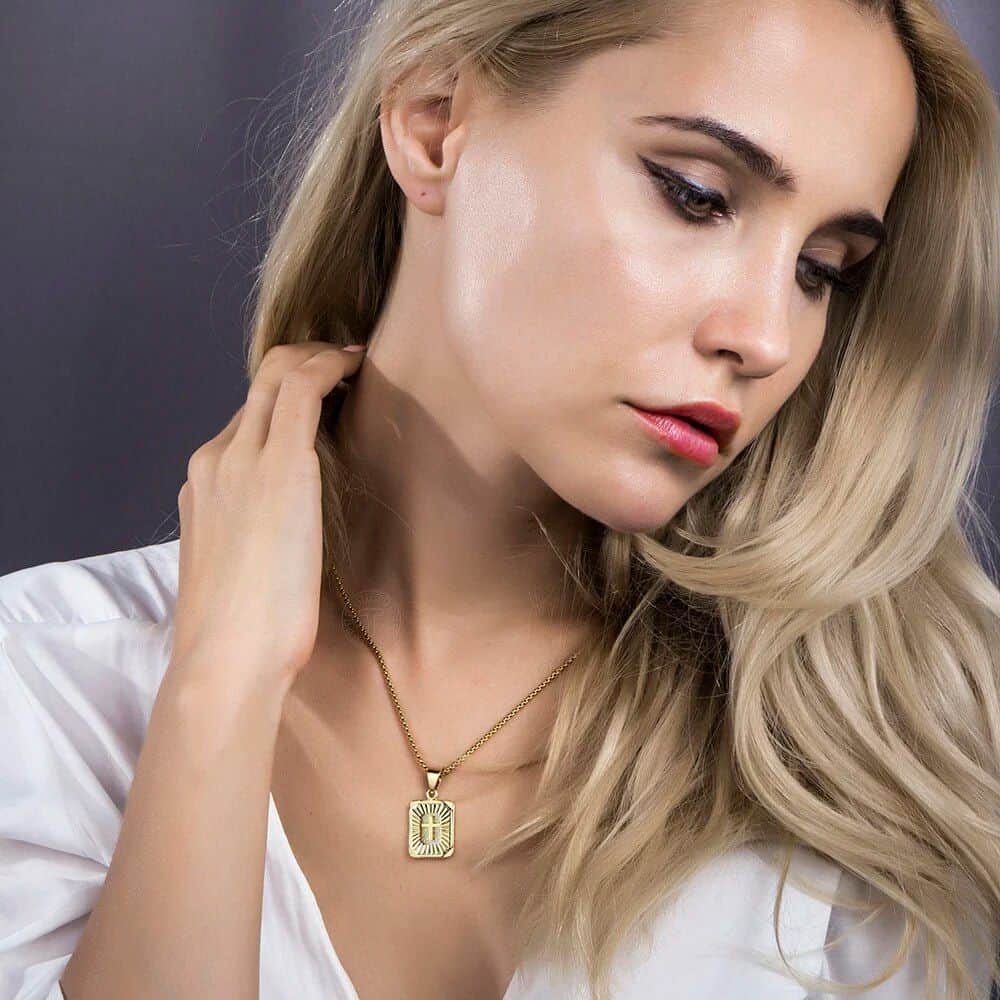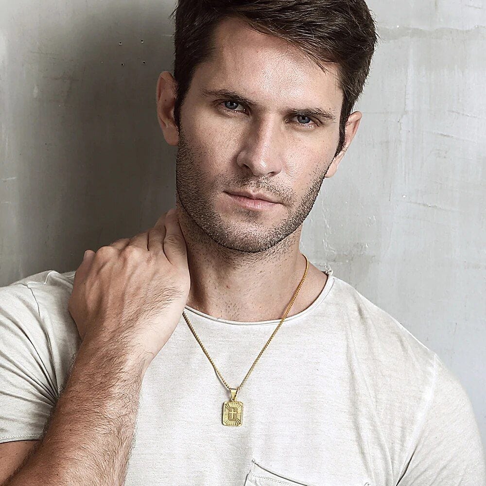 Introducing our New Gold Square Christian Cross Pendant Necklace – a symbol of faith and a stunning accessory that transcends style boundaries. Crafted with precision and passion, this necklace is designed for both men and women who appreciate the fusion of religious significance and contemporary fashion.