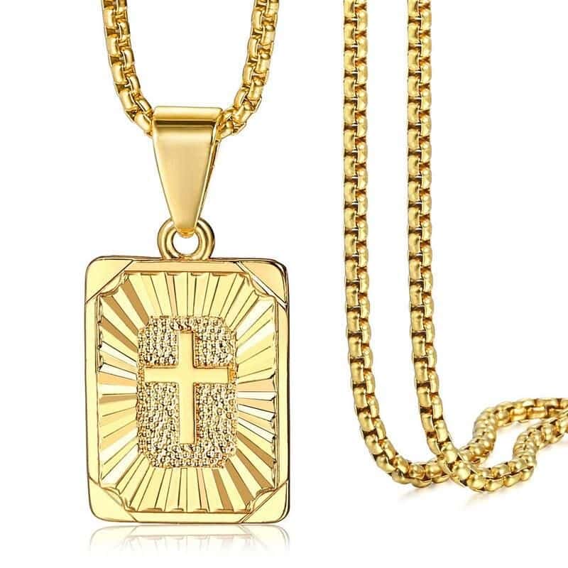 New Gold Square Christian Cross Pendant Necklace