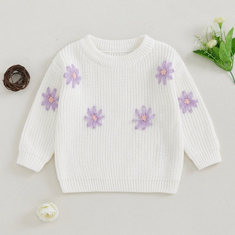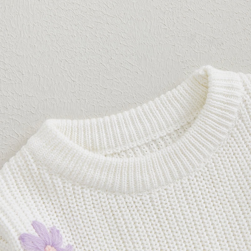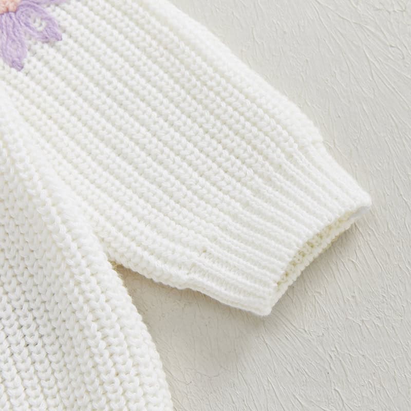Keep your little one snug and adorable with this fall and winter knitted sweater for baby girls. Featuring charming flower embroidery and a timeless crew neck design, this pullover is perfect for adding a touch of elegance to everyday wear. Crafted from a soft and durable blend of 95% cotton and 5% polyester, it offers exceptional comfort and warmth while being gentle on your baby’s delicate skin.