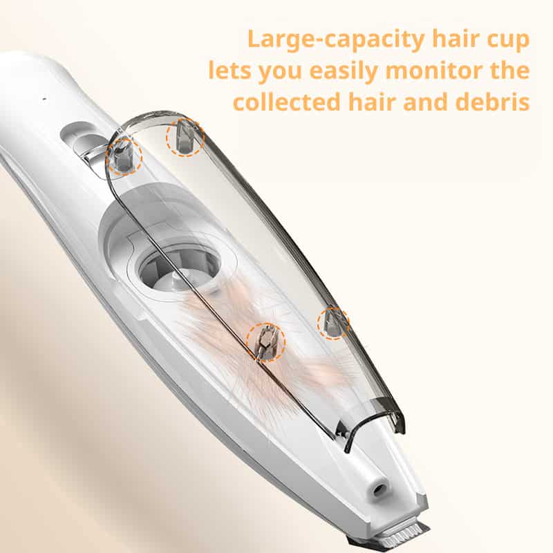 - Less Mess: The suction function collects hair and dust as you groom, keeping your space cleaner.
