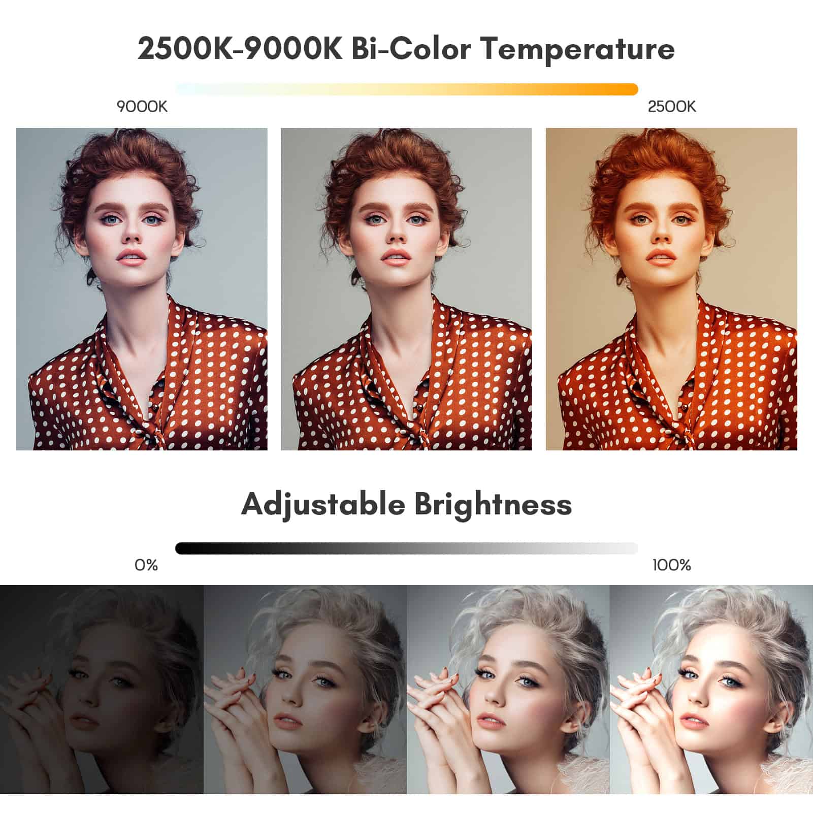 - Customizable Lighting: Adjust the color temperature from a warm 2500K to a cool 9000K and fine-tune brightness to match any environment or mood.