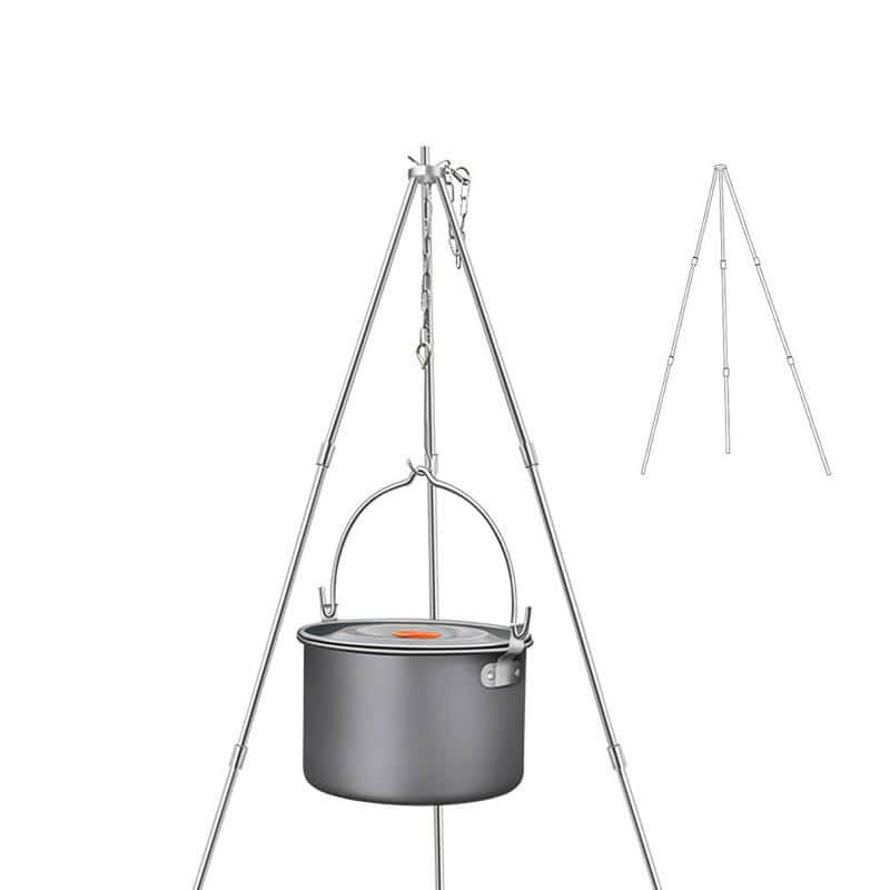 Upgrade your next camping or picnic trip with this Portable Aluminum Camping Tripod, and enjoy the charm of cooking over an open flame. Create memorable meals under the stars with this essential piece of campfire cookware that brings convenience and versatility to your outdoor cooking experience.
