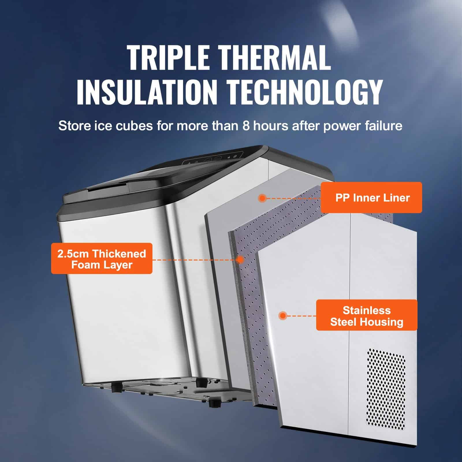 - Impressive Insulation: Three-layer insulation keeps ice intact for over 8 hours, even during power outages.