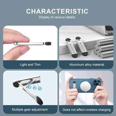 This cellphone stand bracket is a game-changer for those who appreciate convenience and style. Whether you’re working, cooking, or relaxing, our desktop phone holder provides the perfect solution to keep your device accessible at all times. The aluminum alloy material not only adds a touch of elegance but also ensures the stand’s durability, making it a reliable companion for the long haul.