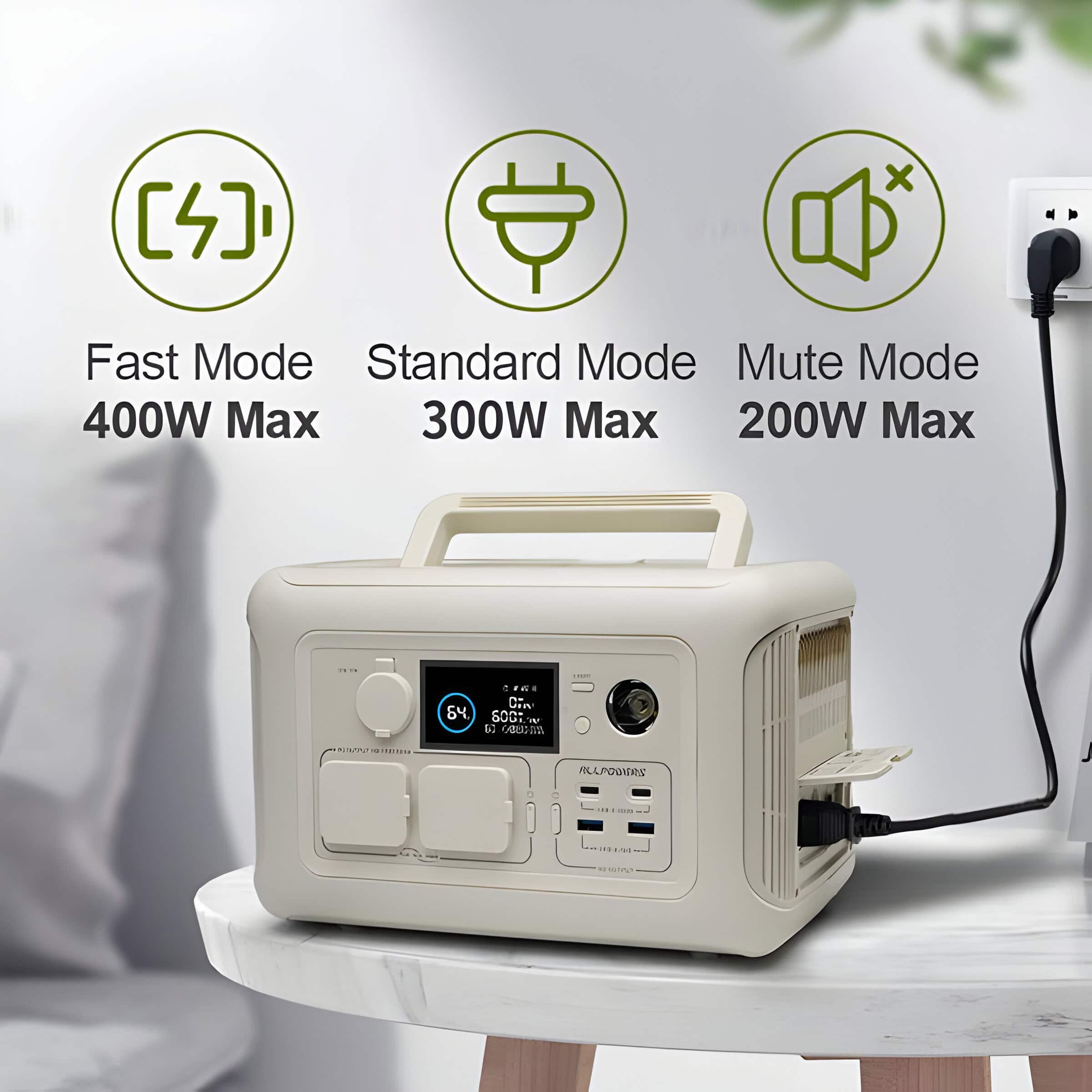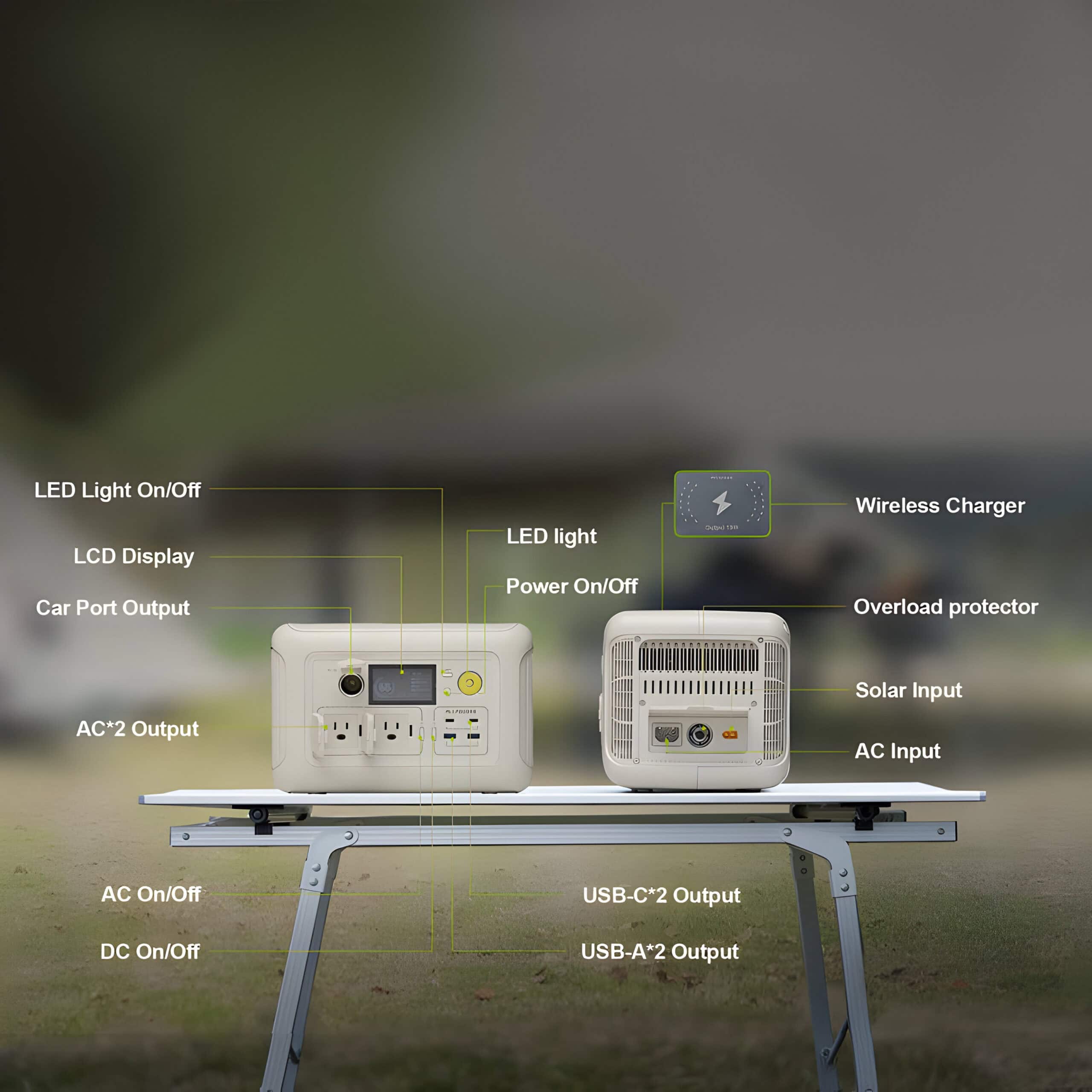 - Multiple Input Options – Recharge via AC (400W max), solar (220W max), or car cigarette lighter (200W max).