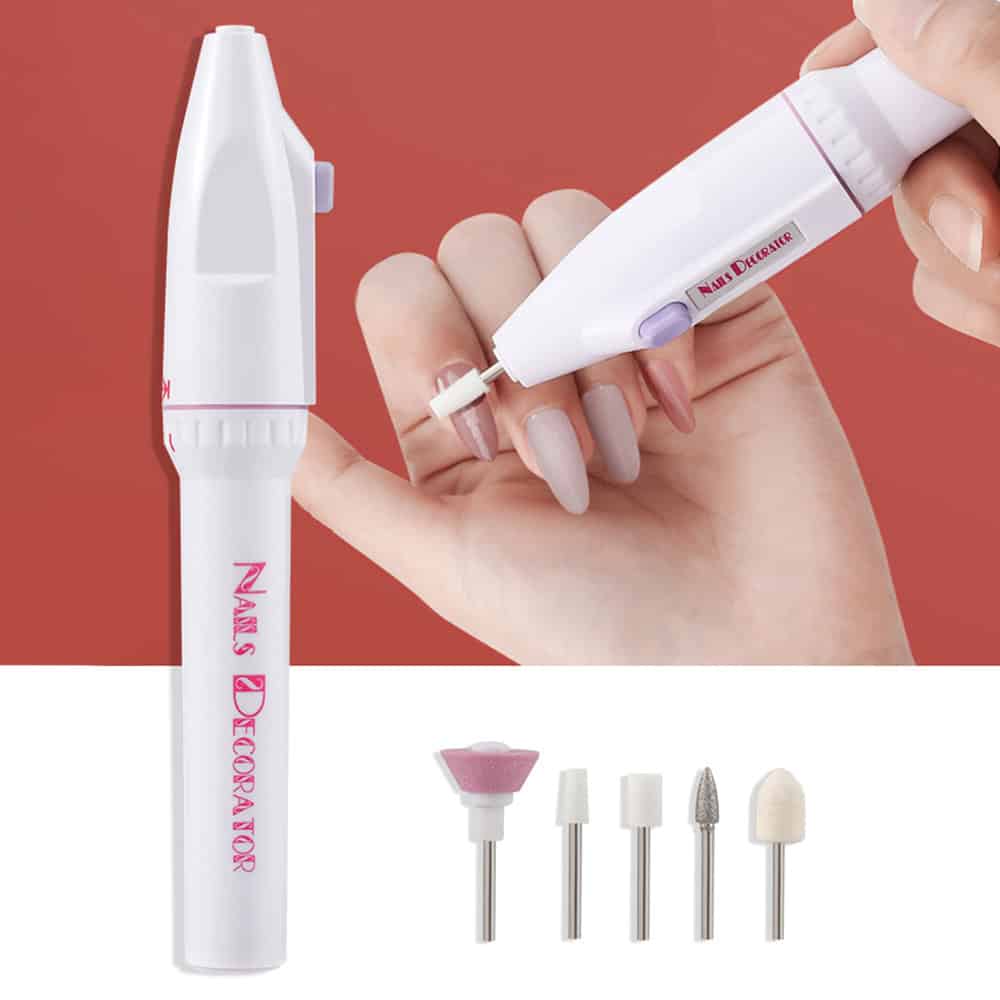 This nail drill machine is compact and lightweight, weighing only 53 grams and measuring 16.5 cm in length. It comes with five interchangeable attachments, each specifically crafted to perform a unique function: