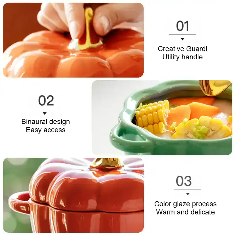 - Design: Festive pumpkin shape with a practical lid, featuring handles for easy lifting.