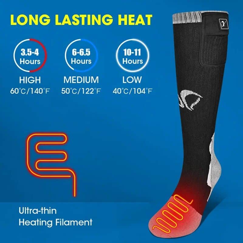 Our socks aren’t just about keeping your feet warm; they’re about enhancing your winter experiences. The soft padded reinforced heel and toe, along with the accurate stitching and recessed heating element, focus heat on the toe to combat cold weather effectively. Ideal for those with arthritis, poor circulation, stiff joints, or simply anyone who suffers from chronically cold feet. The quality imported materials and the easy-to-use temperature control make our heated socks a must-have for winter.