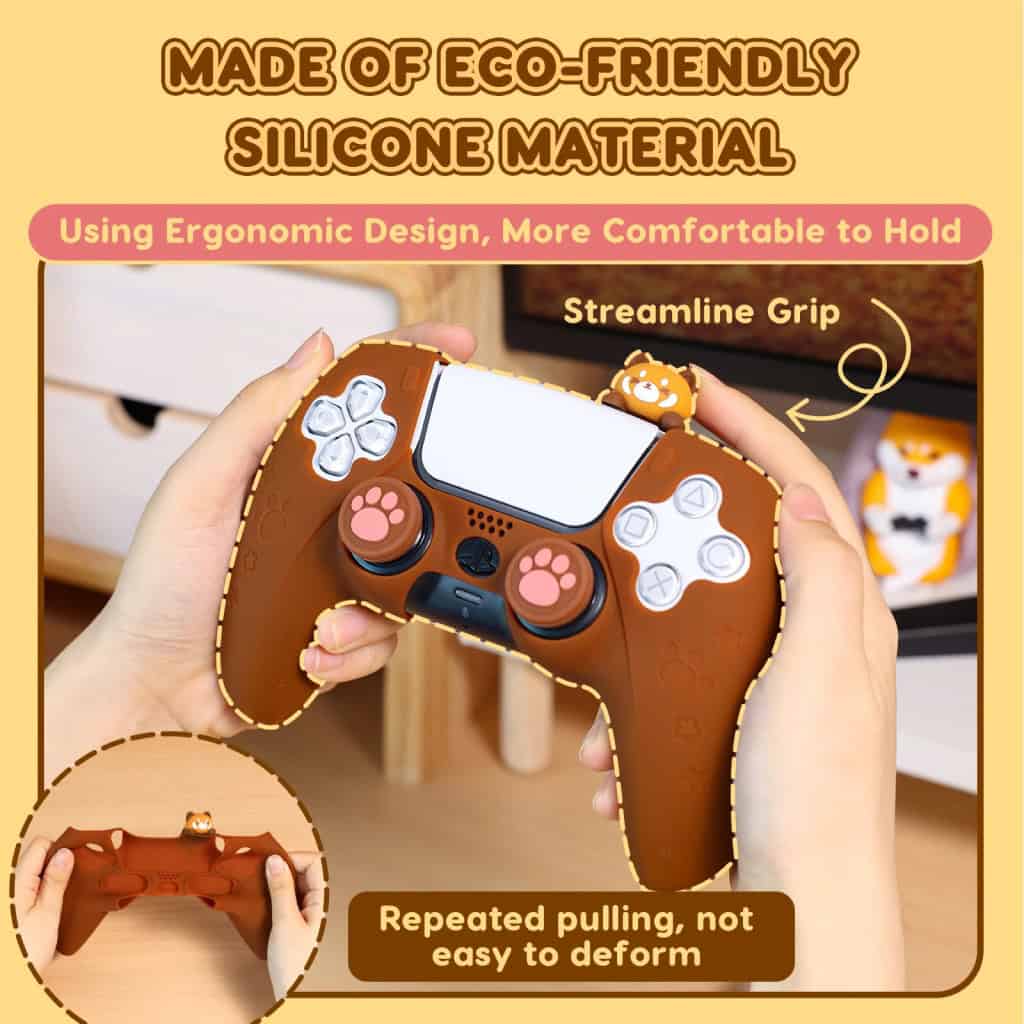 This protective case stands out not only for its striking red panda design but also for its superior protection and eco-conscious material. Unlike other bulky cases that can feel cumbersome, this silicone case maintains the sleek, ergonomic feel of the controller while enhancing its grip and comfort. The case’s durable material shields your controller from scratches and dirt, keeping it looking like new for longer. Plus, its eco-friendly composition makes it an ideal choice for environmentally conscious gamers. The Red Panda Silicone Protective Case combines fun, function, and eco-friendly design into one must-have accessory for any PS5 owner.