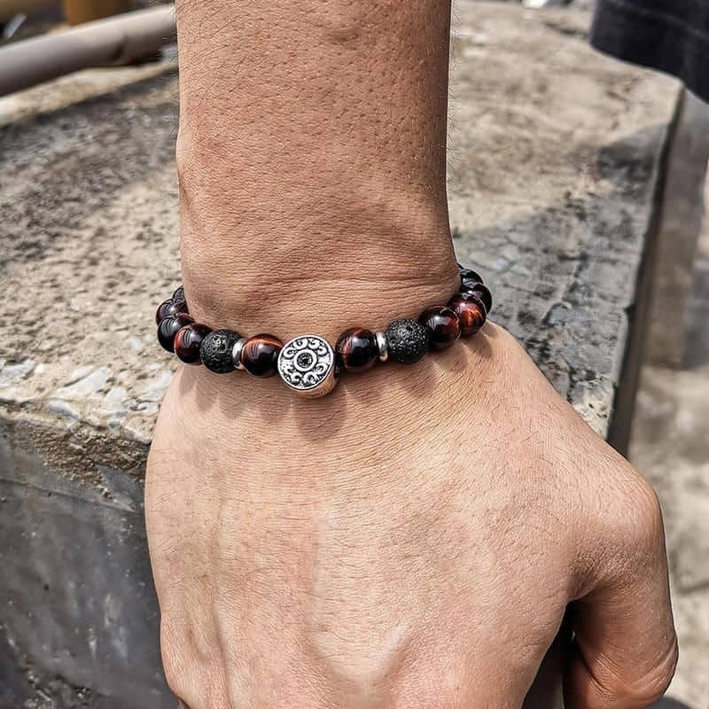 • Material Excellence: Crafted with Alloy, Lava Stone, and Red Tiger Eye Stone, ensuring durability and a sleek look.