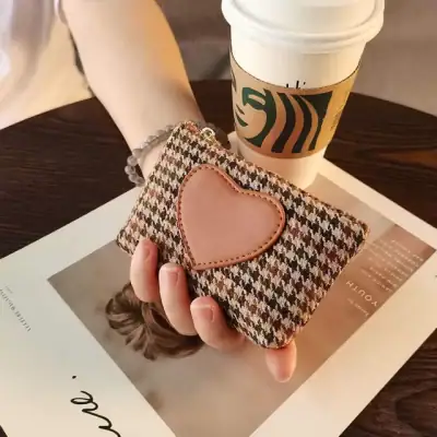 Introducing the perfect blend of vintage charm and practical design – our Retro Heart Houndstooth Mini Coin Purse. Crafted for those who appreciate the allure of yesteryear but demand the functionality of today, this compact treasure is your go-to accessory for everyday elegance. Made with a sophisticated patchwork of PU leather and canvas, it features a classic houndstooth pattern accented with a cute heart detail, making it not just a purse but a statement of style.