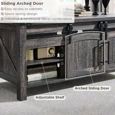 Elevate your living room with our 48-inch Rustic Lift-Top Coffee Table. Designed to combine timeless farmhouse charm with unmatched versatility, this centerpiece effortlessly adapts to your lifestyle. The reclaimed barnwood finish and metal accents add a rustic yet modern touch, making it perfect for any home decor. Whether you’re working, dining, or relaxing, this coffee table has you covered.