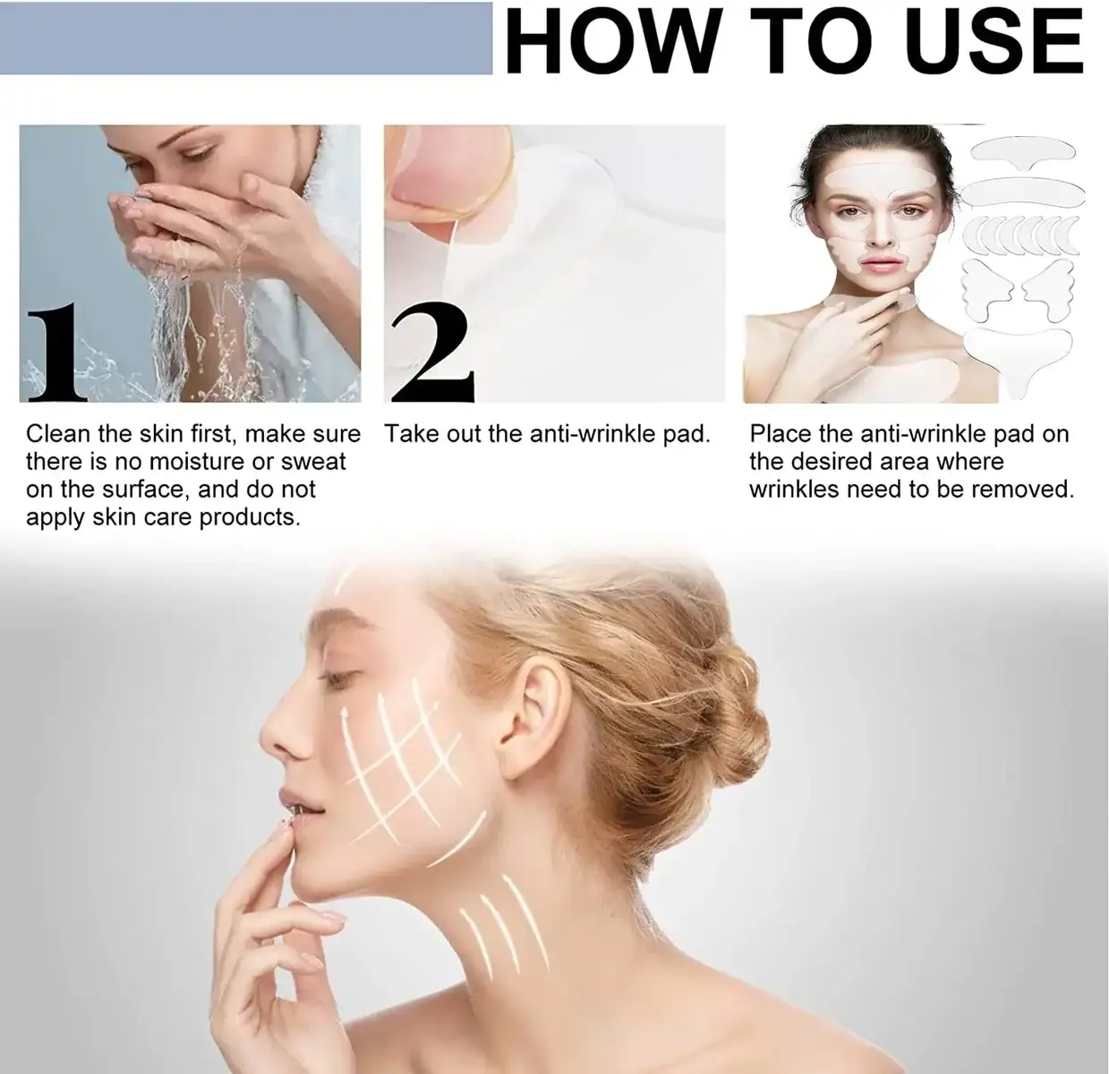 Discover the secret to youthful skin with our Silicone Face Anti-Wrinkle Pad Set. Designed for the forehead, neck, eyes, hands, and breast, these pads are your non-invasive answer to a firmer, smoother complexion.