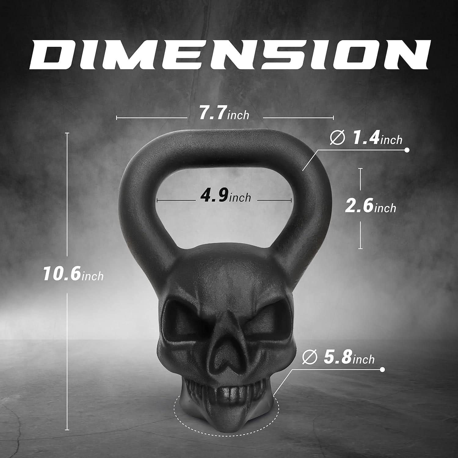 Cast Iron Powder Coated: Engineered with durable cast iron, our Skull Kettlebell ensures longevity without welds, weak spots, or seams. The powder-coated layer provides an additional shield, maximizing durability and resistance against environmental factors – a kettlebell built to last.