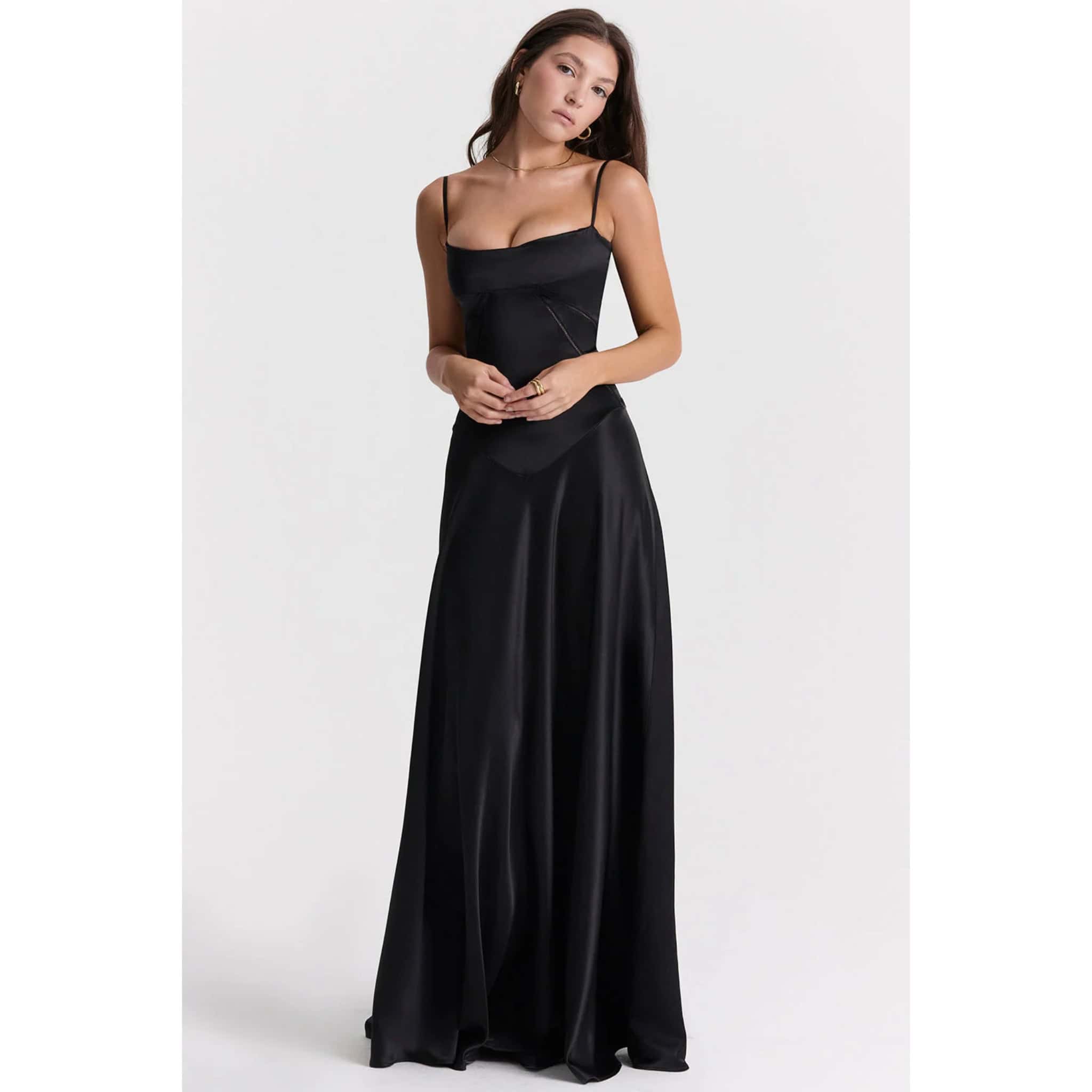 Upgrade your wardrobe with the Sleek Lace-Up Formal Dress. Its timeless design and impeccable craftsmanship make it a versatile piece that you’ll reach for time and time again. Whether you’re attending a formal event or a special occasion, this dress will ensure you look and feel your best.