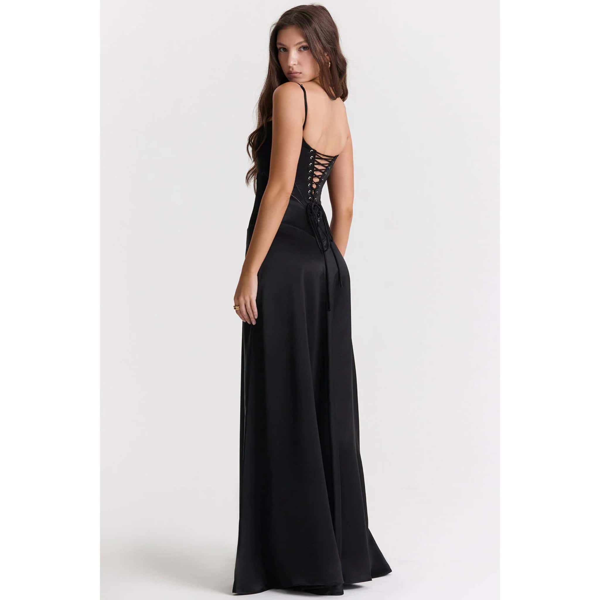 Step into Elegance: Sleek Lace-Up Formal Dress