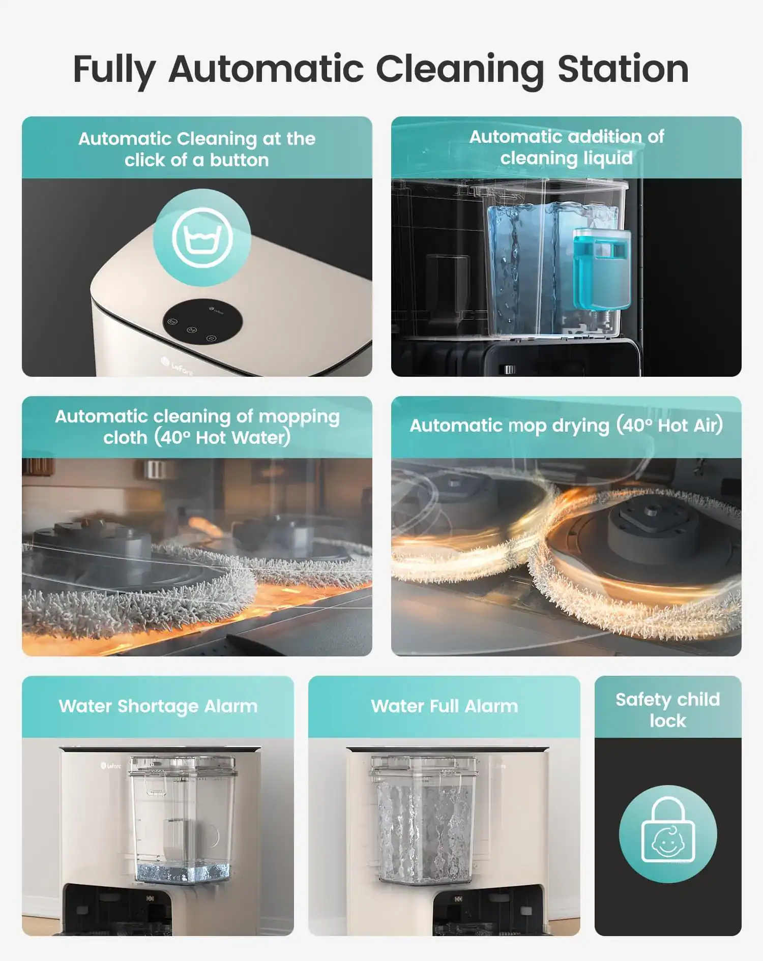 - Self-Cleaning Dock: The robot returns to its dock to clean itself, ensuring optimal performance and convenience.
