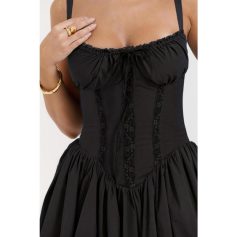 - Attention to Detail: Elegant lace and ruffled neckline enhance the dress’s visual appeal.