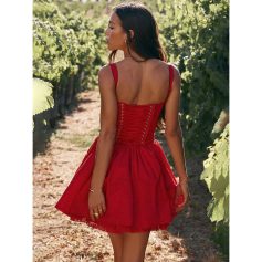 Step into the spotlight with the Spaghetti Strap Lace Mini Dress, your new go-to for spring and summer festivities. Designed to dazzle, this backless, spaghetti-strapped dress combines femininity with a touch of allure, perfect for parties, nightclubs, or any event where you want to make a stunning impression. Its above-the-knee length and flowing A-line silhouette offer a playful yet elegant appeal that flatters your figure while allowing for graceful movement.