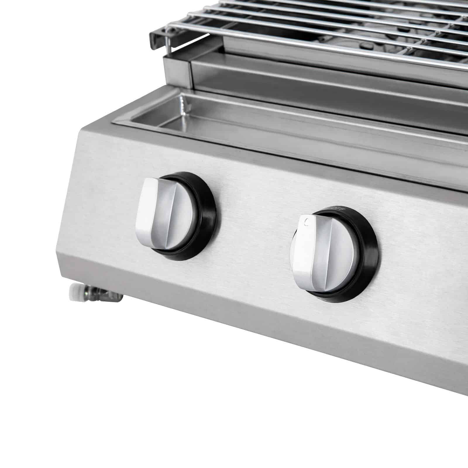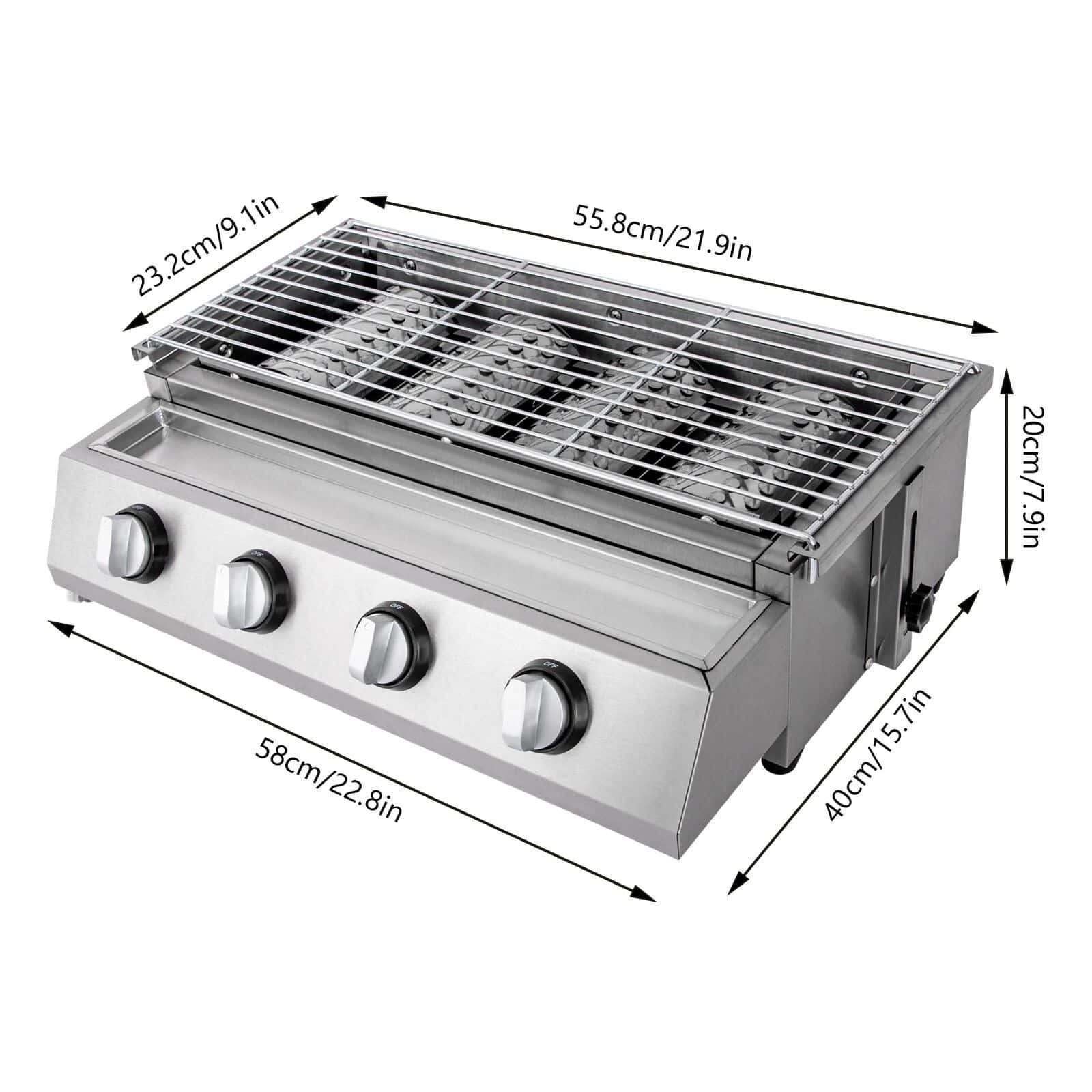 - Independent Ignition: Comes with 4 burners and control switches, allowing precise temperature control for each section.