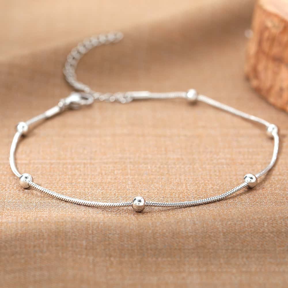 Stunning silver anklet with spherical accents, perfect for women seeking stylish jewelry. Ideal for everyday wear or special occasions to enhance your ankle's beauty.