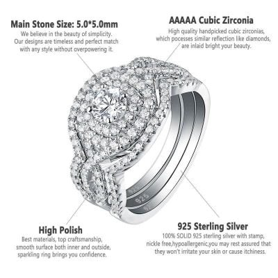 - Design: Classic yet trendy, the set includes an engagement ring and two accompanying bands, perfect for stacking or wearing individually.