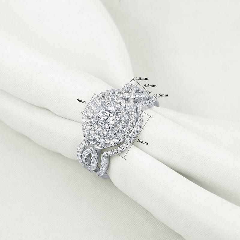 Discover the perfect symbol of your love and commitment with our Sterling Silver 3Pcs Wedding Ring Set. Exquisitely crafted with fine details and a brilliant shine, these rings are designed to celebrate your union with timeless elegance. The round-cut cubic zirconia centerpiece dazzles with a clarity and brilliance that mirrors the depth of your affection, making every moment together sparkle.