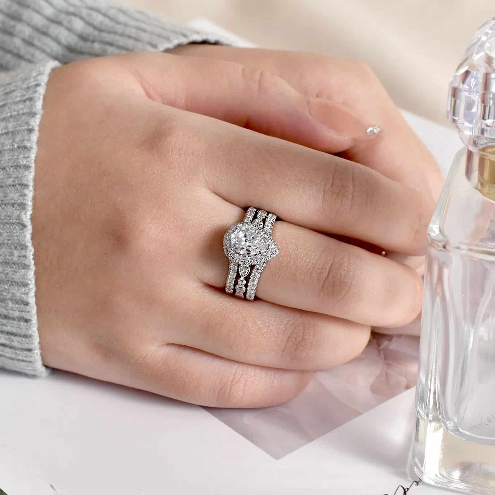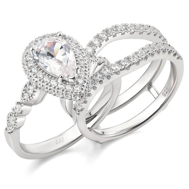 Make a statement with our Sterling Silver Pear Cut Zircon Engagement Ring Set. It’s more than just a ring; it’s a testament to enduring love and exquisite taste. Order now and step into a world of elegance and romance.