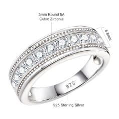Elevate your style with the sophistication and brilliance of our Sterling Silver Round Cut Cubic Zircon Men’s Wedding Band. Perfect for those who appreciate luxury and elegance, this ring is designed to add a touch of class to any ensemble. Its versatility makes it ideal for various occasions, be it a wedding, anniversary, or a special celebration.
