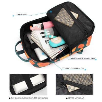 Our backpack is made from high-quality polyester, ensuring durability and a stylish finish. The interior boasts a computer interlayer, a cell phone pocket, and an interior zipper pocket, providing ample space for your essentials. The exterior’s solid, fruit-patterned design adds a splash of fun to your outfit, making it perfect for school, work, or casual outings.