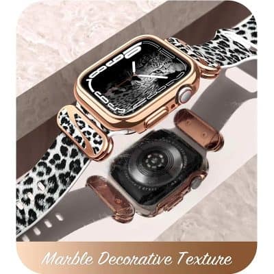 This watch strap isn’t just a protective gear, it’s a statement piece. The unique designs, ranging from chic Marble to wild Leopard, provide a look that suits any occasion. Whether you’re dressing up for a night out or accessorizing for a day at the office, this case has got your Apple Watch covered—literally and stylishly.