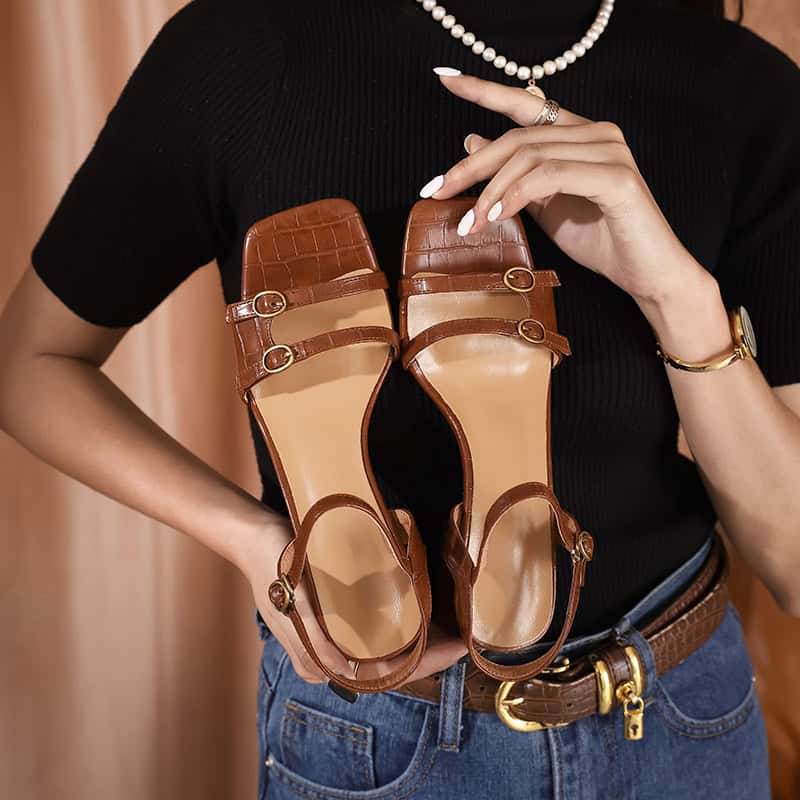It’s not just the genuine leather or the expert craftsmanship that sets these sandals apart. It’s the attention to detail in every aspect, from the comfort of the pigskin insole to the stylish and functional buckle strap that ensures a perfect fit. The square heel is not just a fashion statement but also designed to provide stability and support, making these sandals as practical as they are stylish.