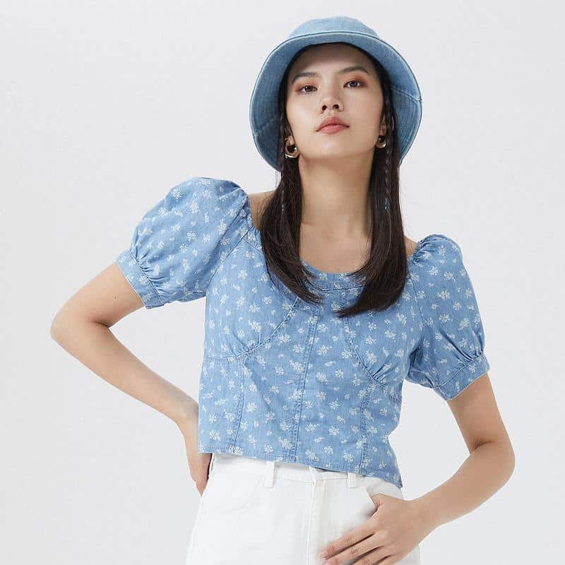 Be the first to review “Summer Floral Denim Crop Top with Puff Sleeves”